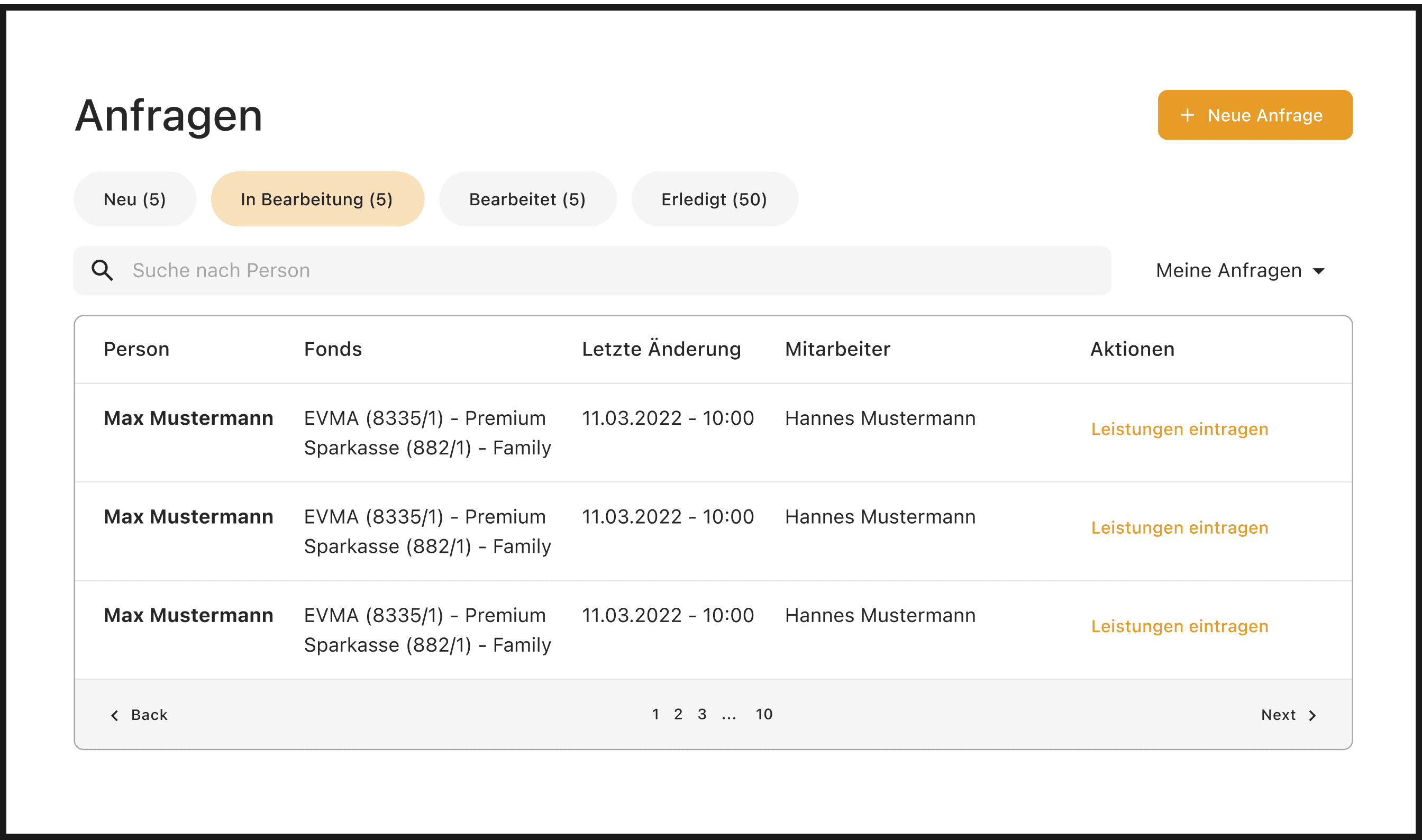 This project was initiated to replace the existing ERP solution with a new web-based platform. The aim of the new software is to optimize the insurance company's workflows and reduce manual processes. During the concept phase, which was characterized by several workshops and feedback loops, we worked with the customer to develop optimal digital processes. Our newly developed web platform now completely dispenses with paper, significantly reducing the time required to process a claim. The software serves two user groups: the insurance company's employees and its members.
